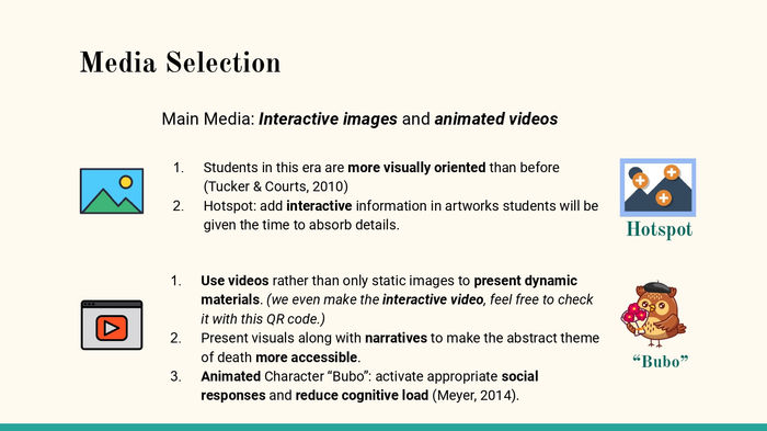 During our group project in the Cognitive Science course, we noticed a lack of adequate guidance on the subject of death among U.S. public school students. Enthusiastic about museums, we proposed using artworks from museums worldwide to address this vital aspect of life education for young learners.